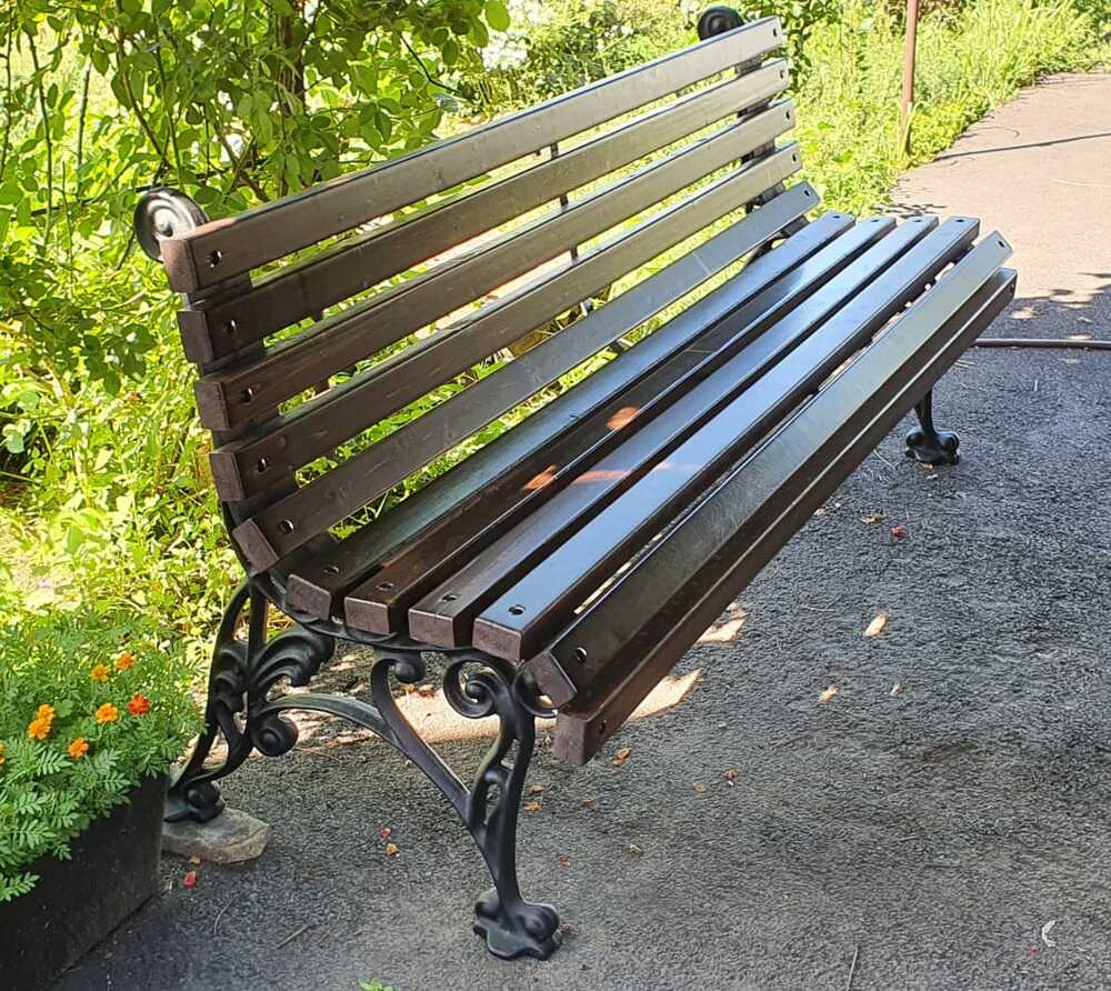 - Комплектация: 11 деревянных брусков 30х60 или 40х60, 2 чугунные художественные опоры окрашенные, фурнитура